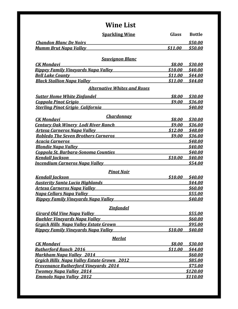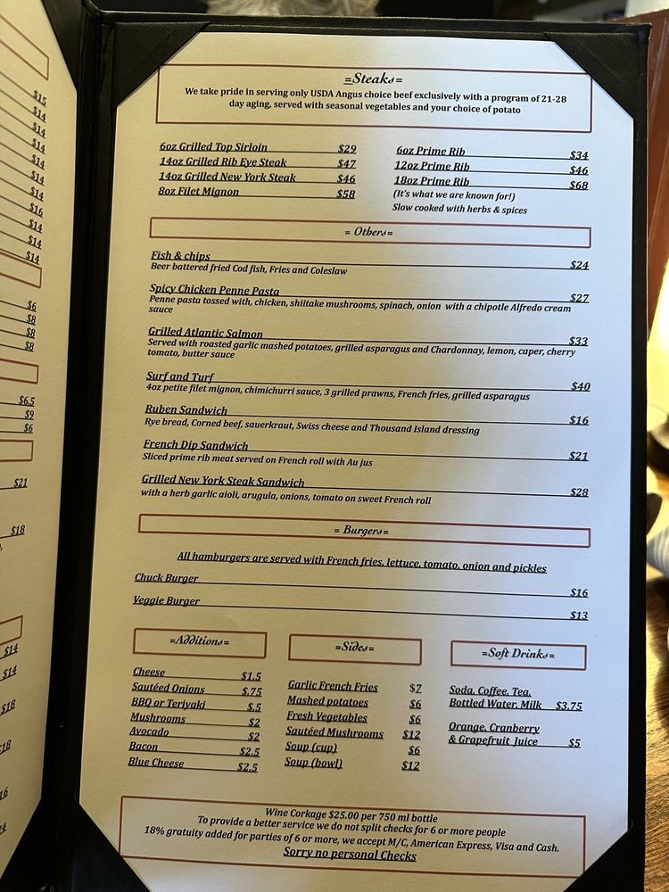Welcome to Trancas Steakhouse, a beloved dining spot in Napa, California, where comfort meets culinary excellence. Renowned for its warm and inviting atmosphere, Trancas offers a robust menu that features succulent cuts of steak like Ribeye, Filet Mignon, and Prime Rib, along with delightful specials such as clam chowder and beef Wellington. If you're in the mood for something light, their carefully crafted salads and tender seafood options like salmon will not disappoint.